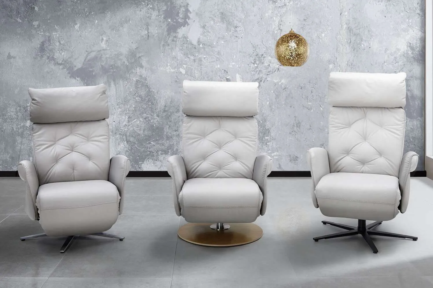 Der Relaxsessel Eremo ist in unterschiedlichen Grössen und Farben erhältlich. Wählen Sie zwischen Leder oder Stoff. Bei diesem Modell haben Sie die Wahl, ob elektrisch oder manuell verstellbar. Zudem können Sie zwischen verschiedenen Untergestellen wählen.