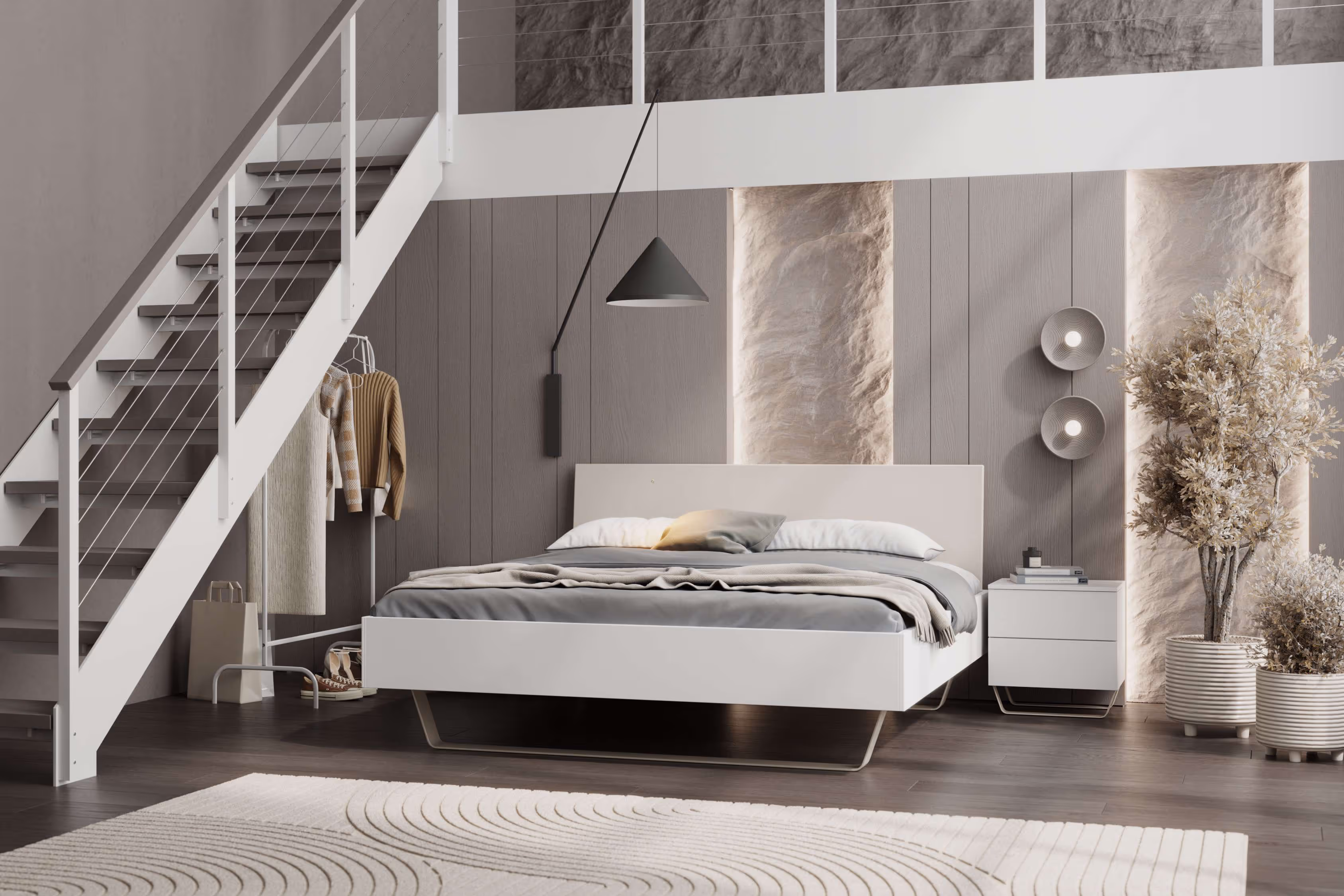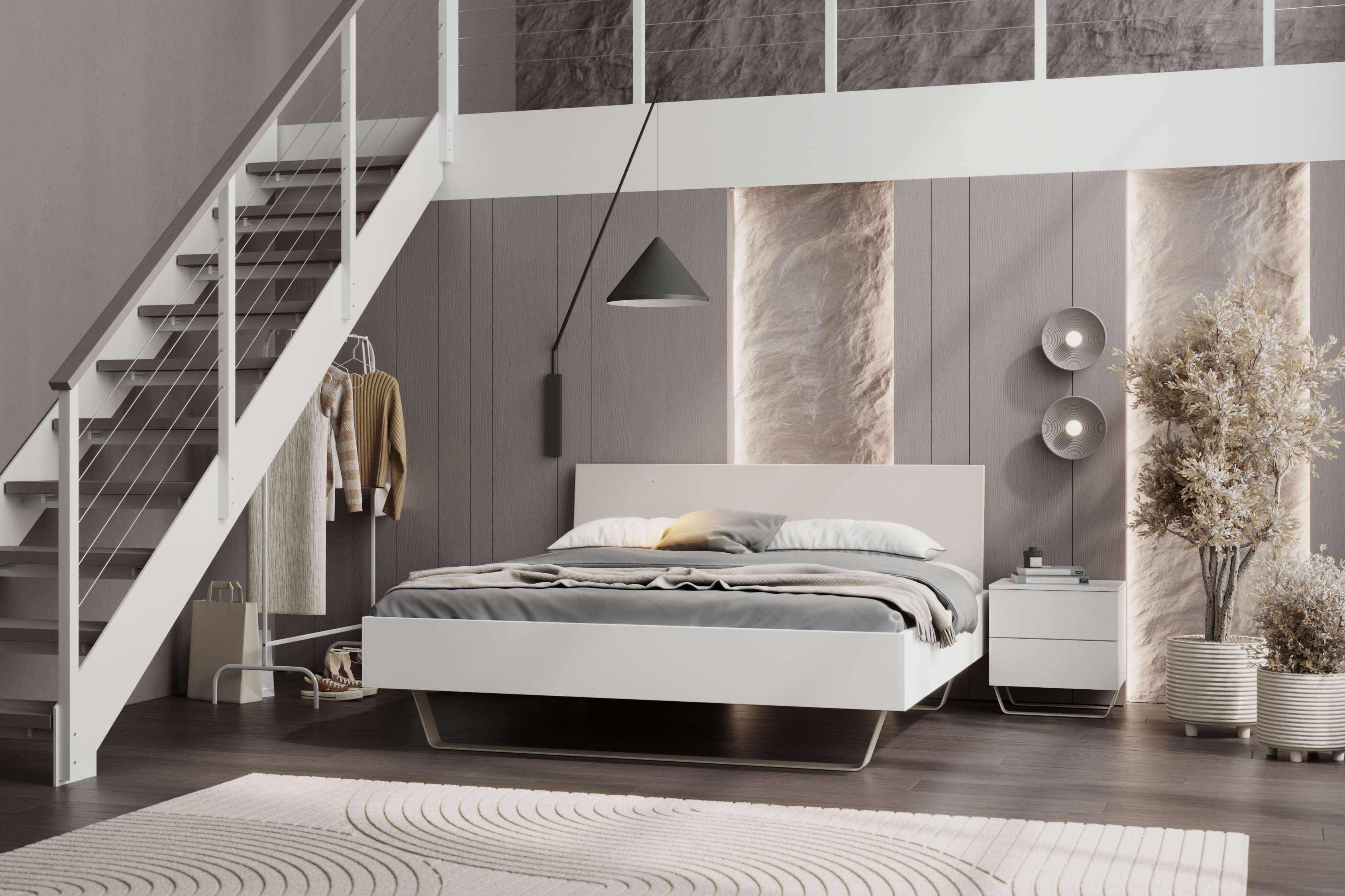 Elegant und schlicht – so präsentiert sich das Bett Moana. Wählen Sie Ihr Bett nach der RAL-Farbkarte und machen so das Schlafzimmer zur persönlichen Oase. Mit passendem Nachttisch oder Kommode kommt auch der praktische Komfort nicht zu kurz.