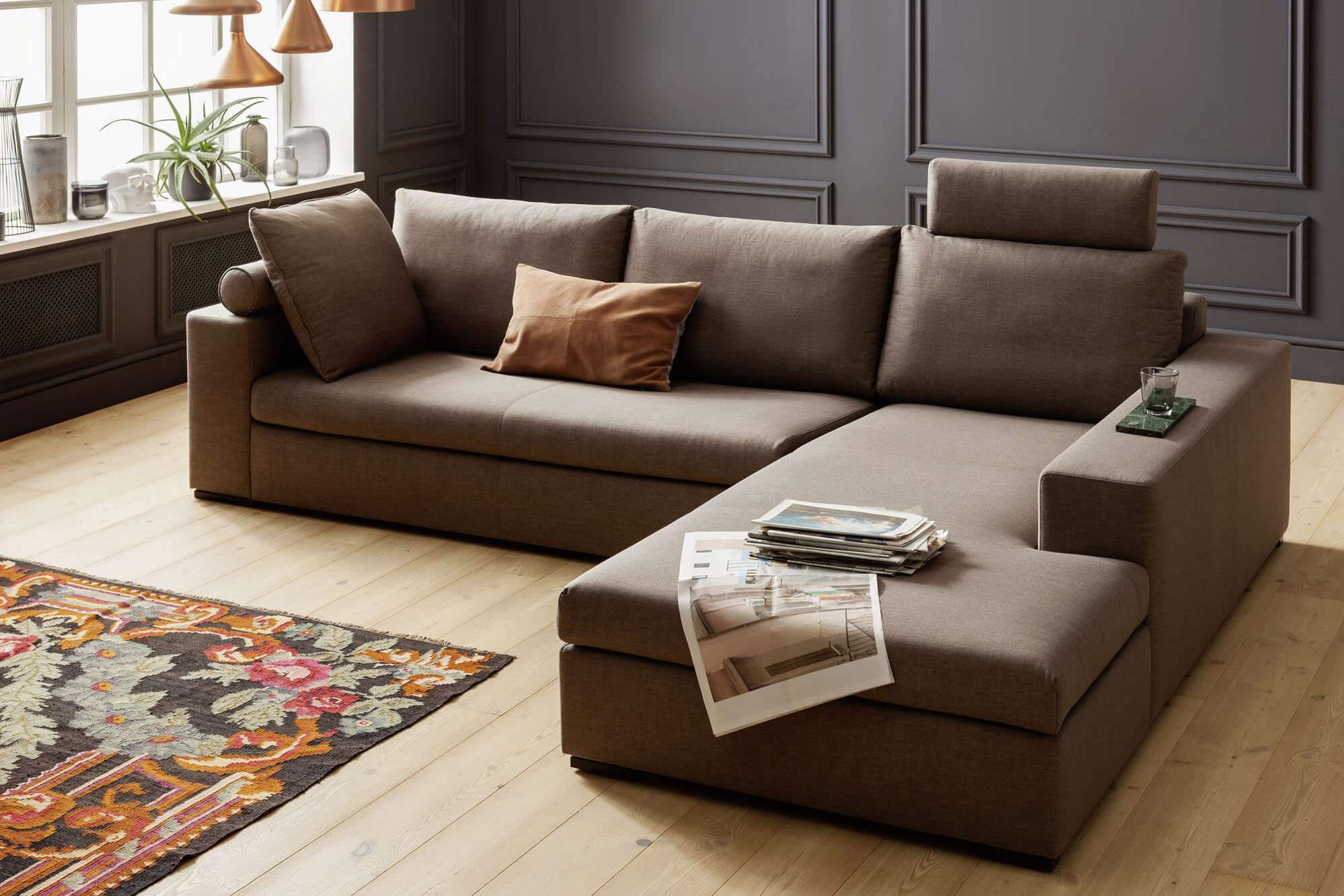 Einzelsofaprogramm Panama elegante qubische Polsterguppe mit stufenloser Relaxverstellung des Sitzes.