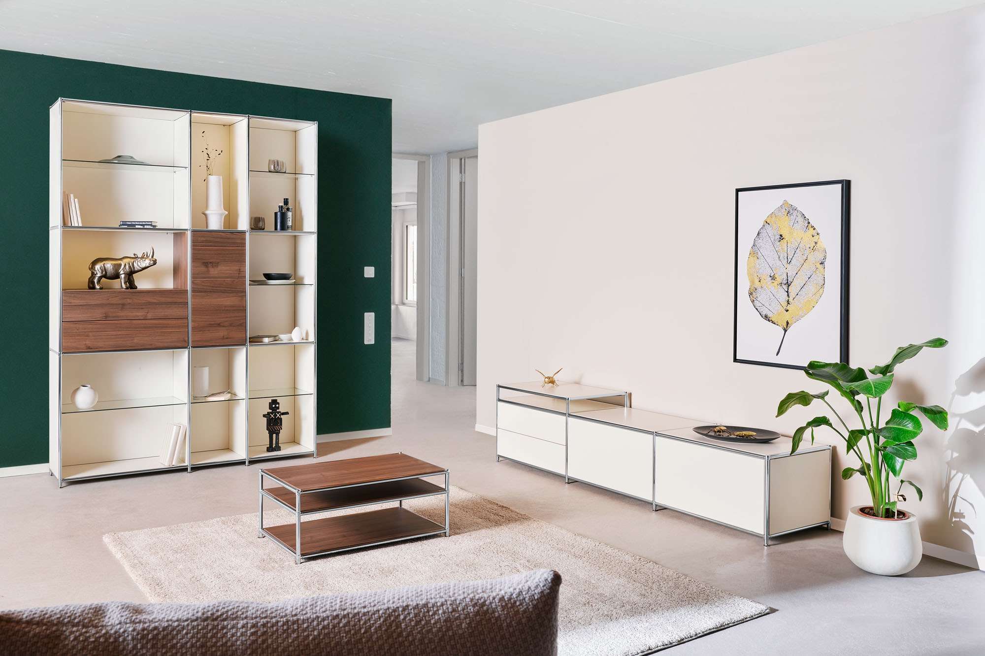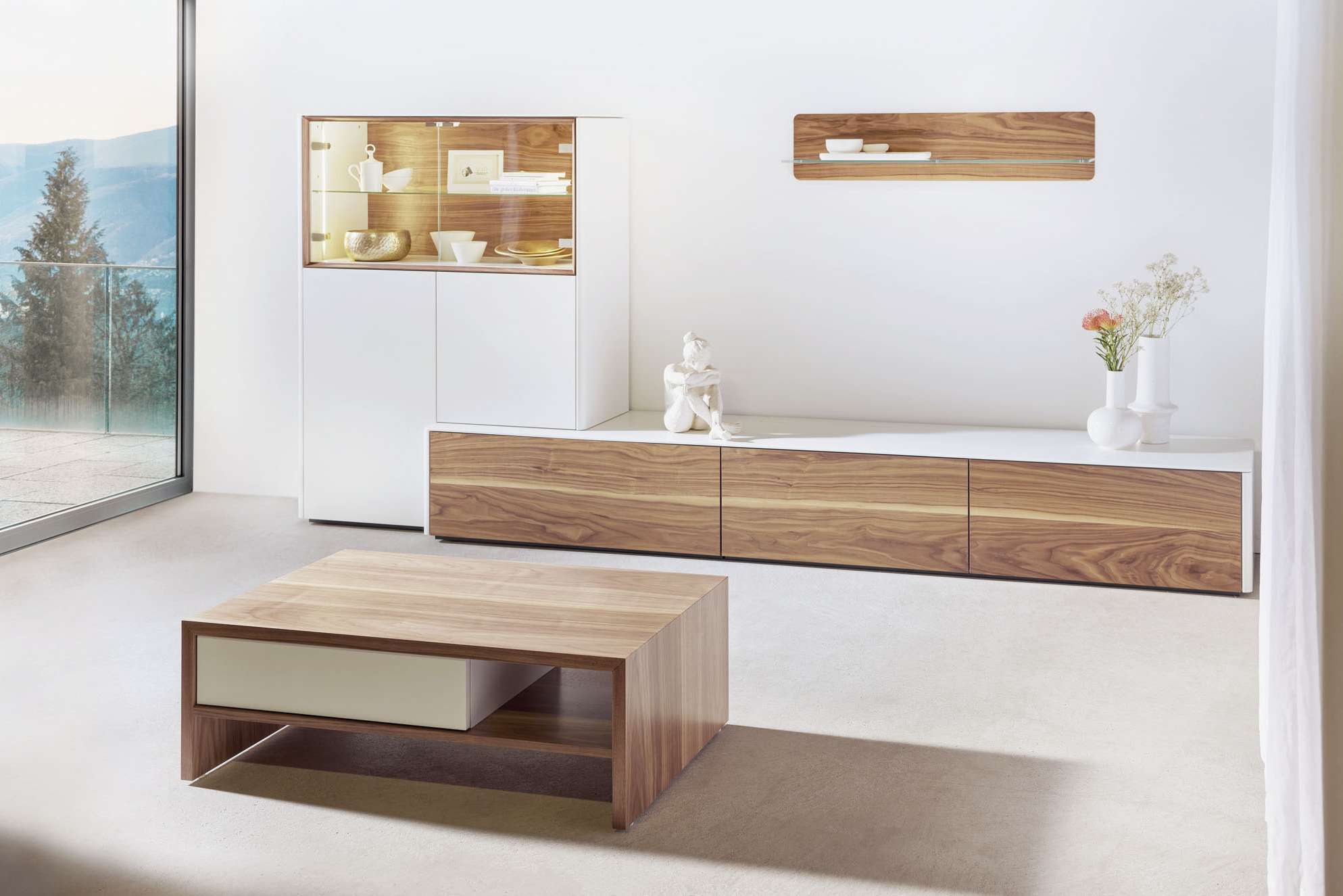 Das Sideboard Puro Wavespielt mit Gegensätzen und vereint sie. Feine Lienienführung, die den Korpus umrahmen, öffnen sich hierbei an den Kanten unf gehen über in eine sanft geschwungene Form.