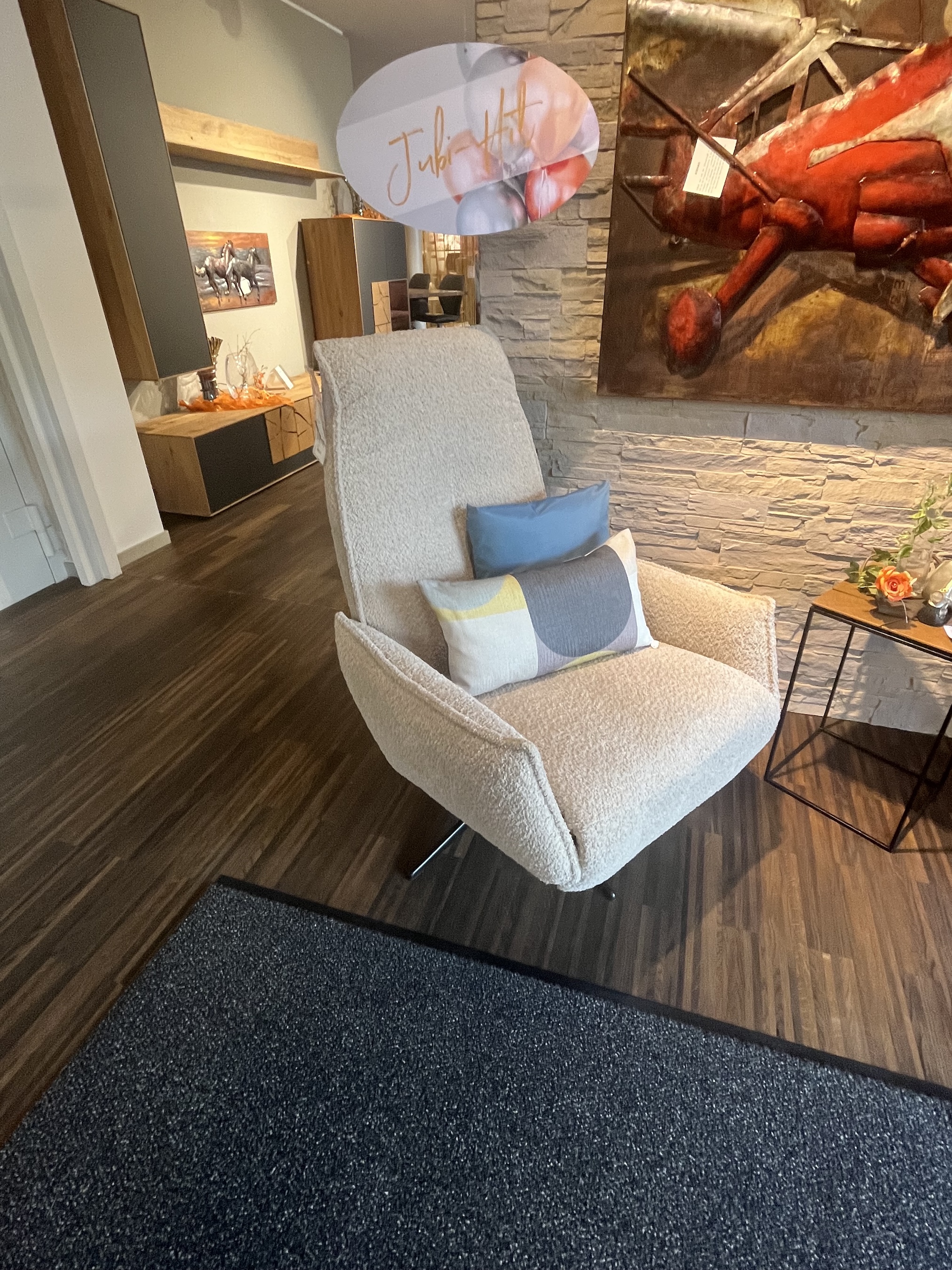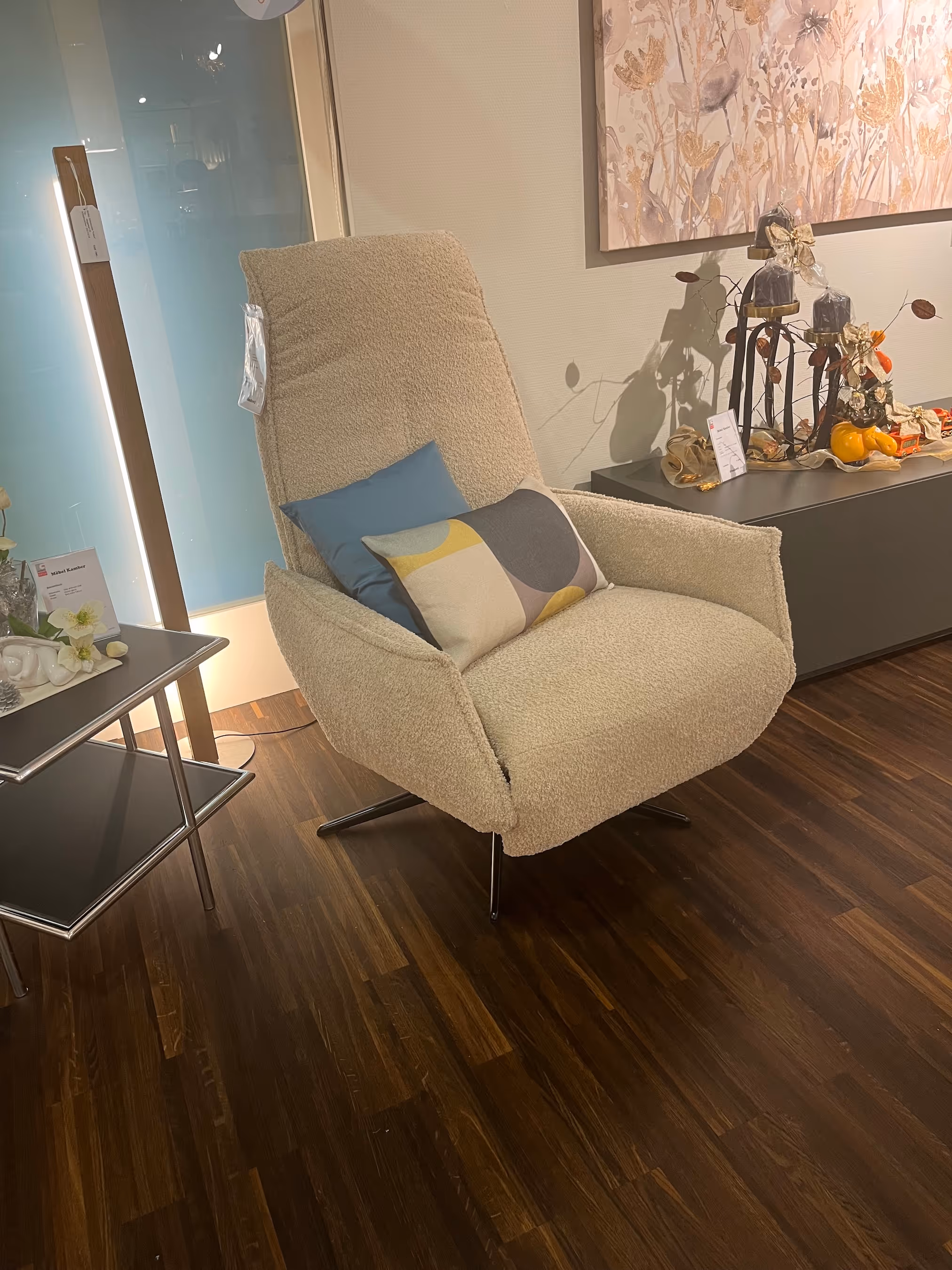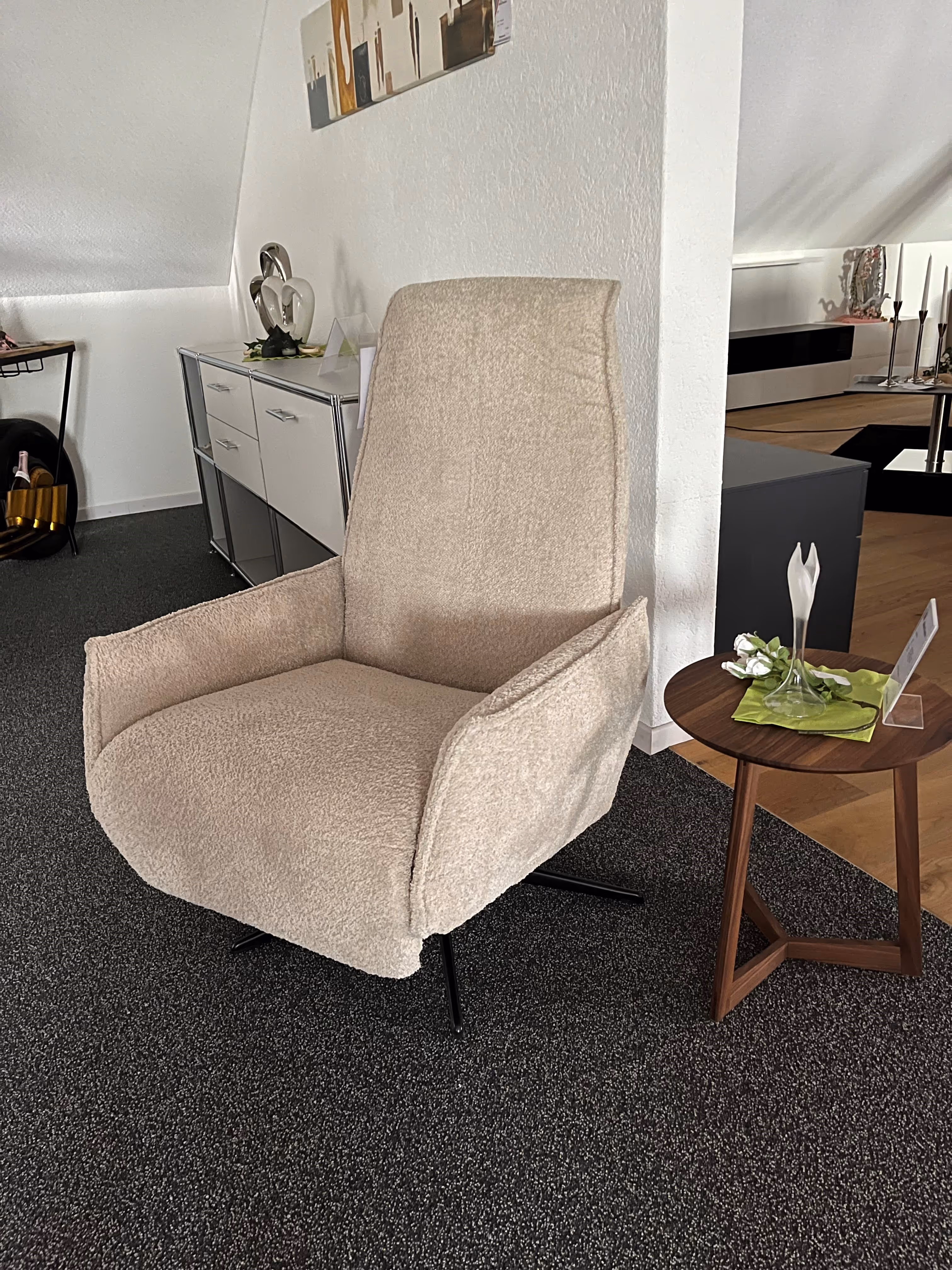 Sessel mit verstellbarer Fusstütze, Stoff Teddy beige