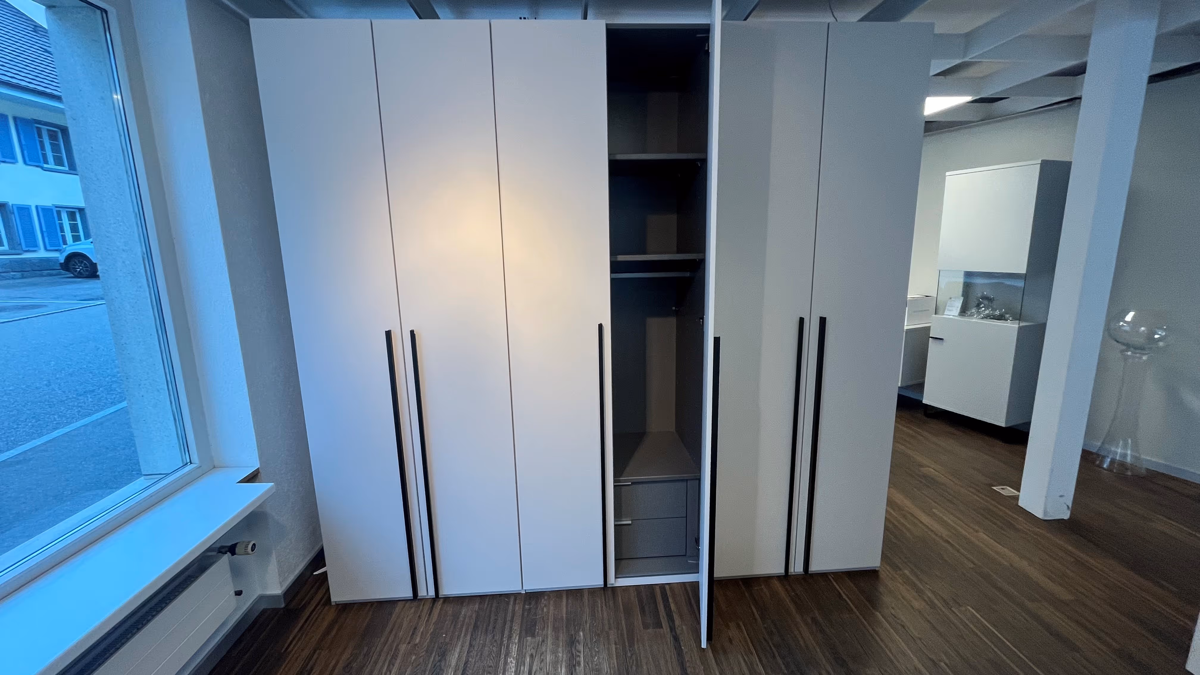 Schrank 6 türig in Decor hellgrau, inkl. Innenschubladen