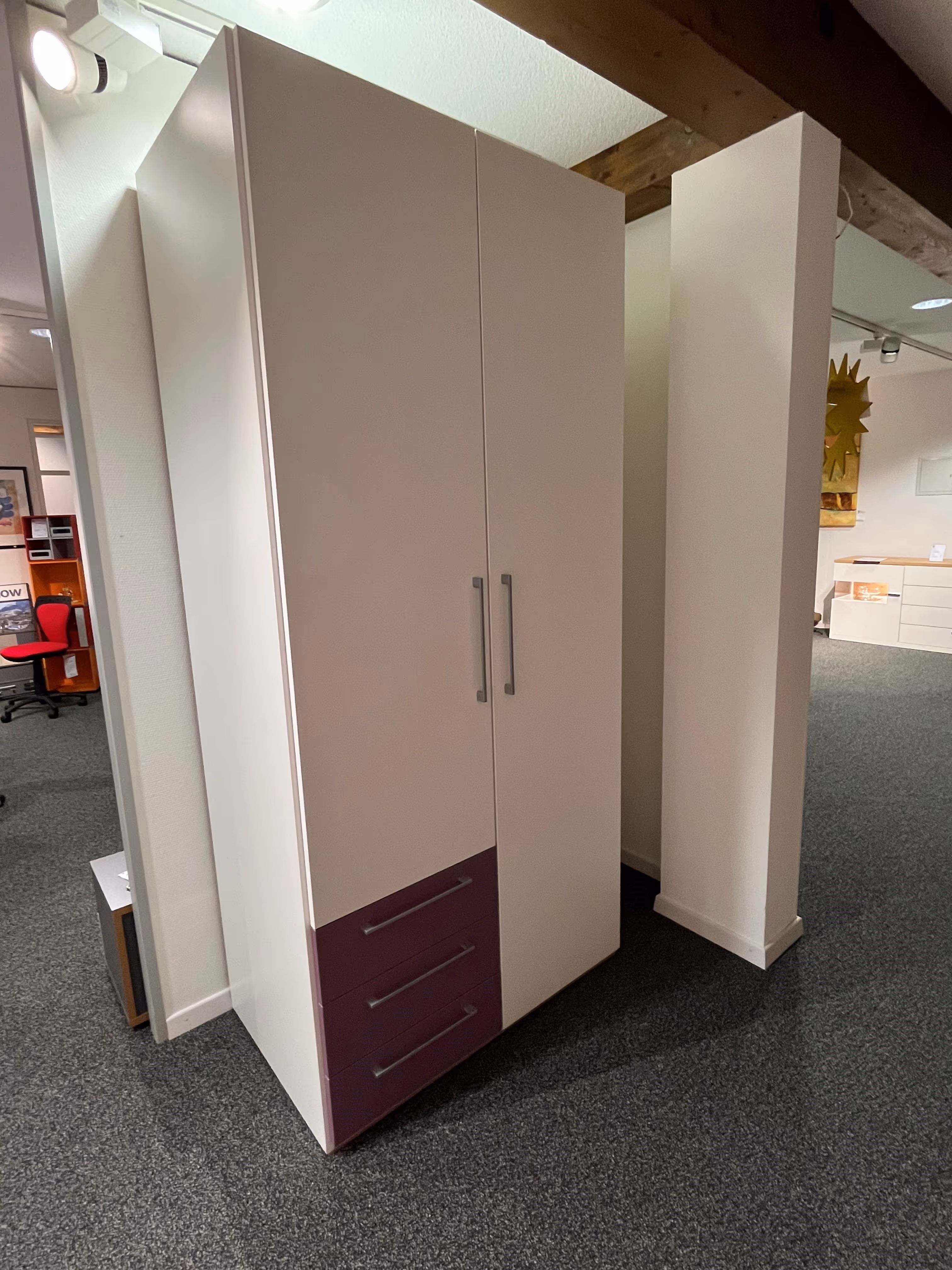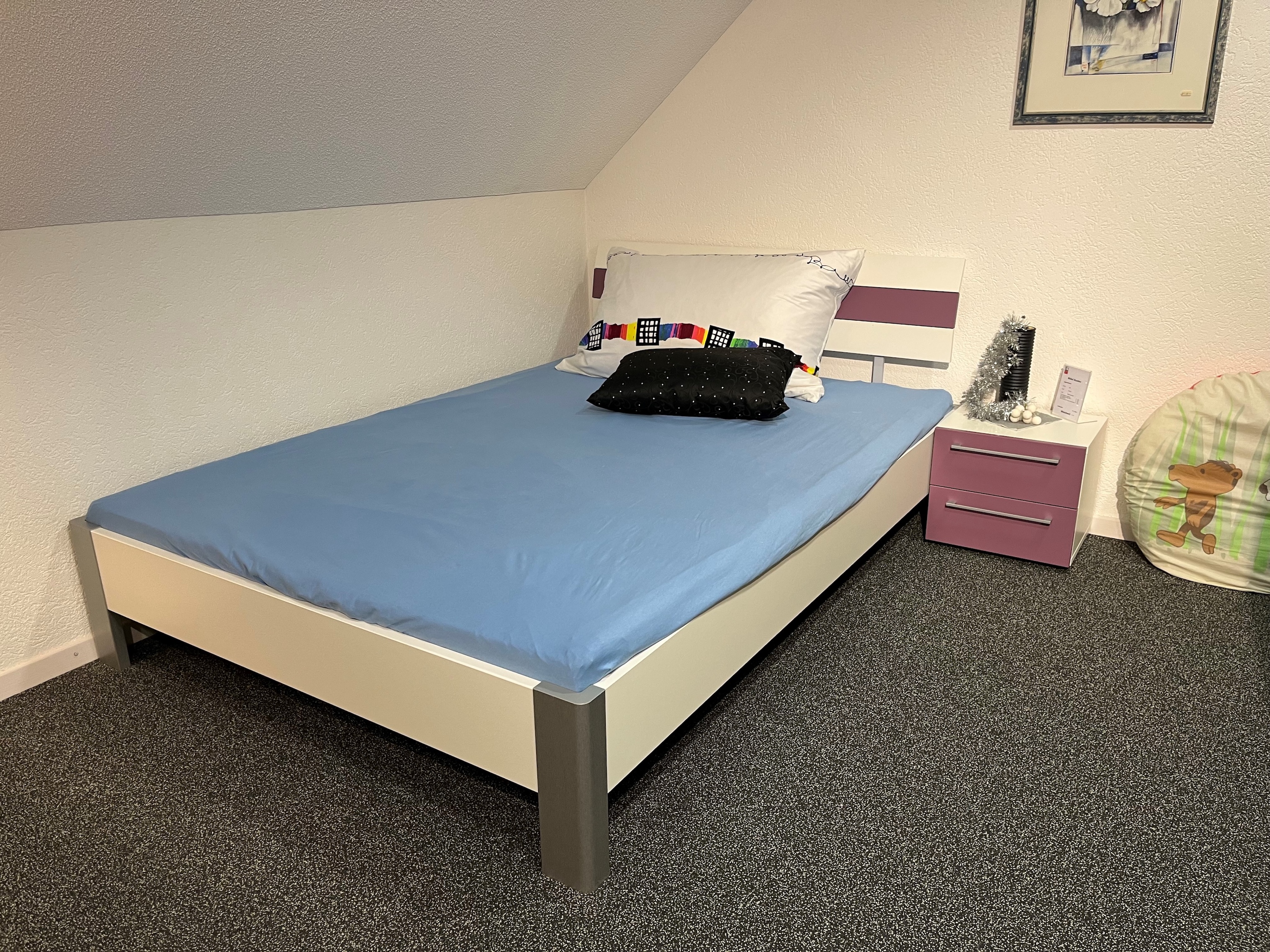 Studio 3-teilig in Decor weiss und flieder, Bett 140x200cm, Schrank 2-türig mit Schubladen und Nachttisch